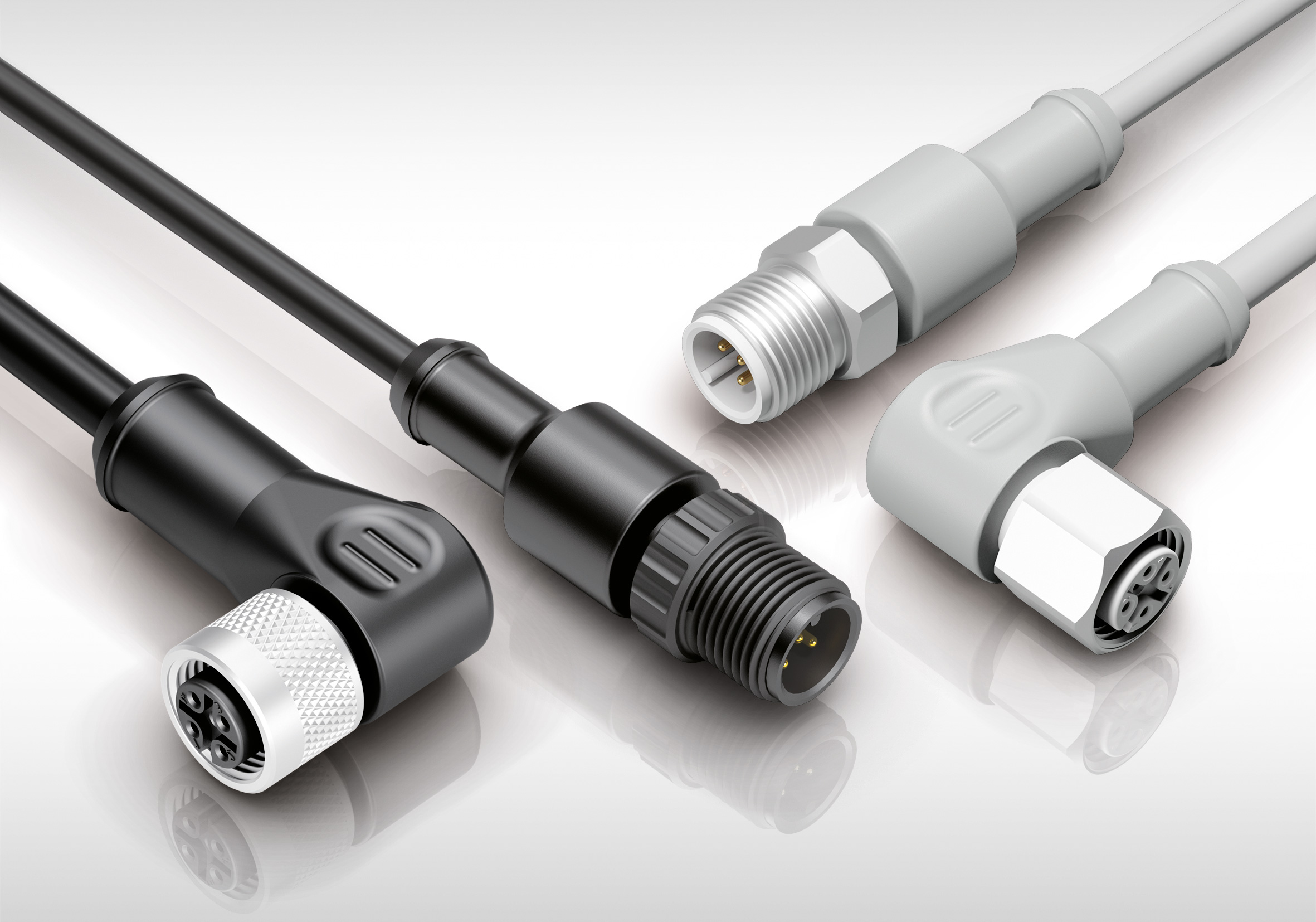Subminiature connectors are designed for applications that require restricted space and signal integrity. M9 connectors are available with 2 to 8 contacts, in straight or angled versions while snap-in are available with 3 to 5 contacts. The cable jackets are made of PUR or PVC.