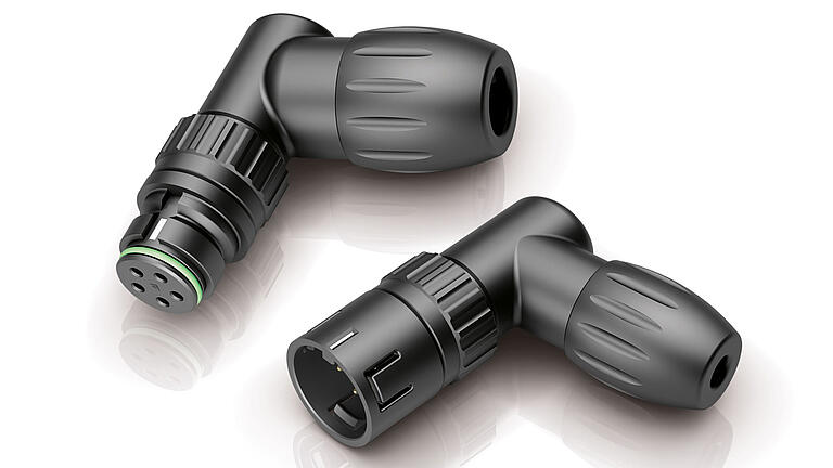 binder, a leading supplier of industrial circular connectors, has complemented its 720 and 770 product series by field-attachable angled variants. Such compact angled connectors are used in device, building, and plant engineering: Particularly where secure electrical connections need to be established in confined spaces, the angled versions of the 720/770 series with snap-in or bayonet locking provide a reliable and space-saving alternative to the straight versions.