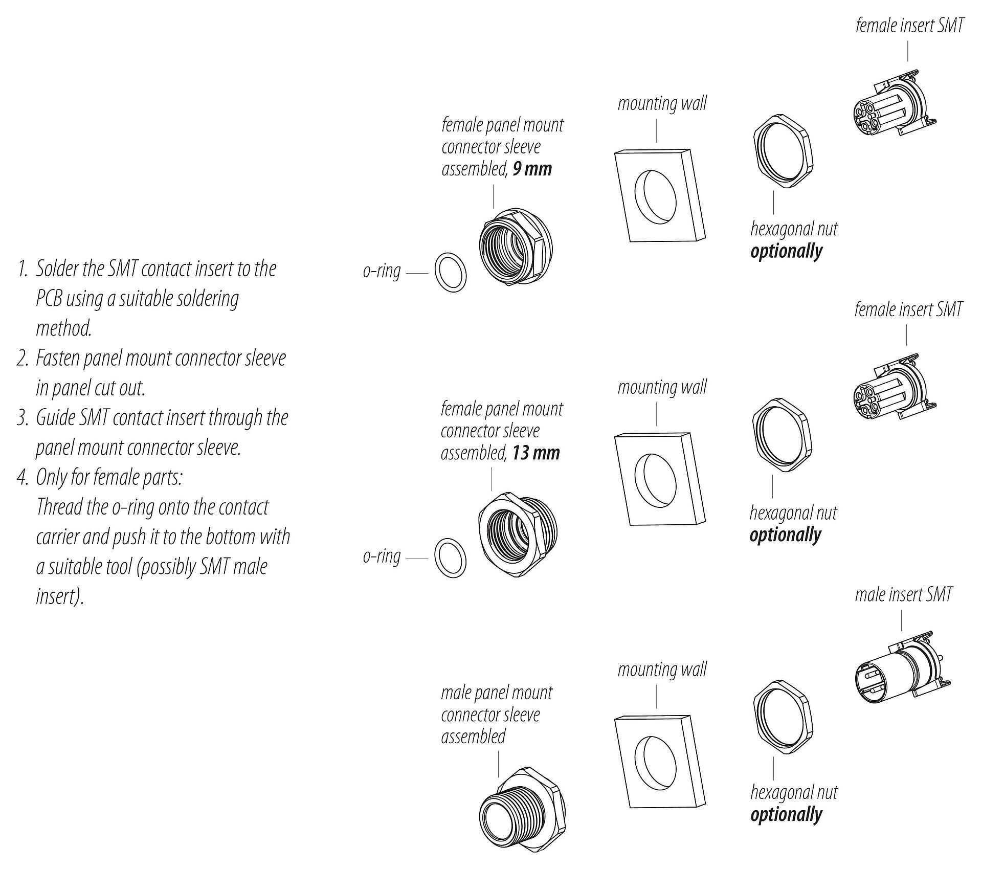 | Connector design | Male panel mount connector |
