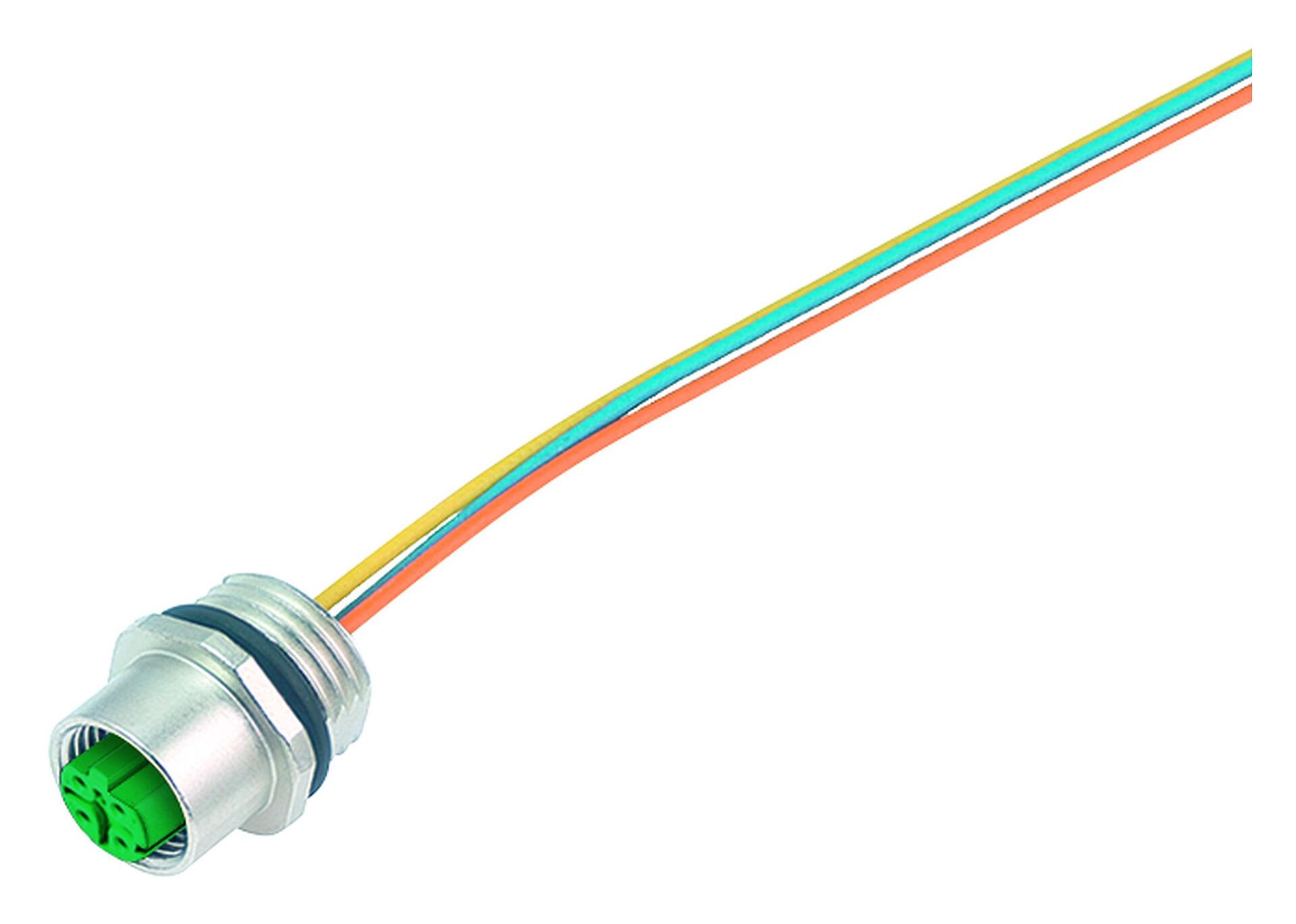 M12 Female panel mount connector, Contacts: 4, unshielded, single wires, IP67, UL 2238, M16x1.5, Front mounting