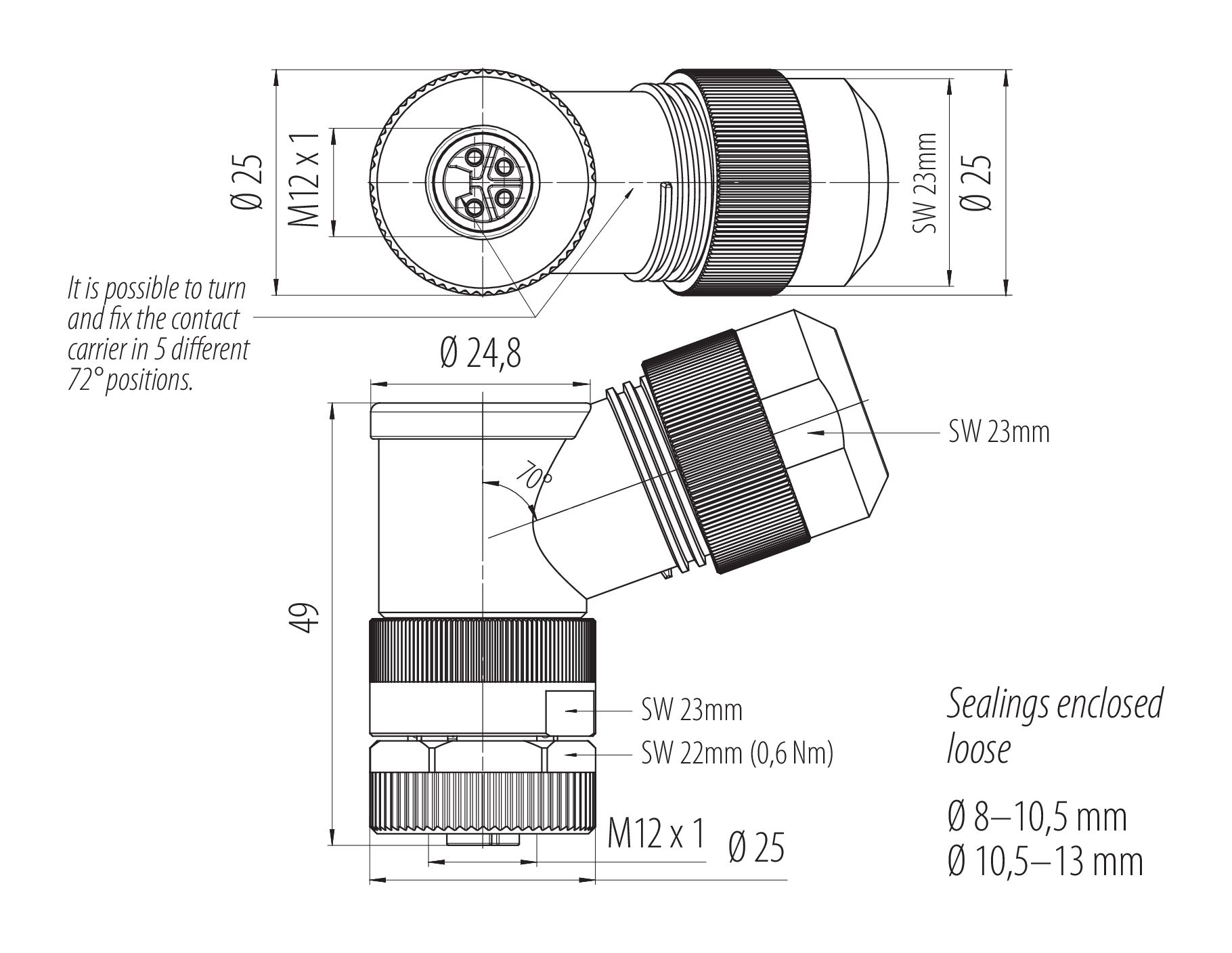 - Plug connectors with enclosure protection IP67 and IP68 are not suitable for use under water. When used outdoors, the plug connectors must be protected separately against corrosion. For further information on the IP protection classes, please refer to the "Technical Information" download centre.