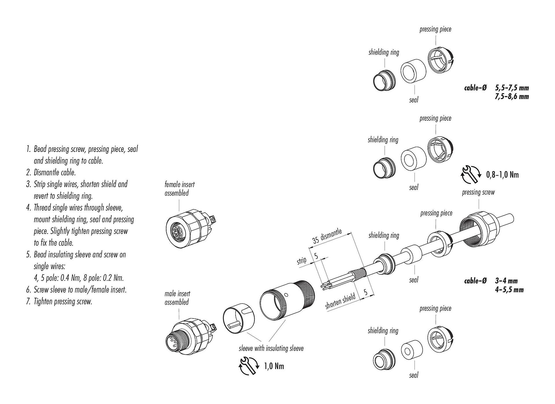 - To lock the cable connector with the device connector, the threaded ring is tightened "hand-tight" (approx. 60 cNm).