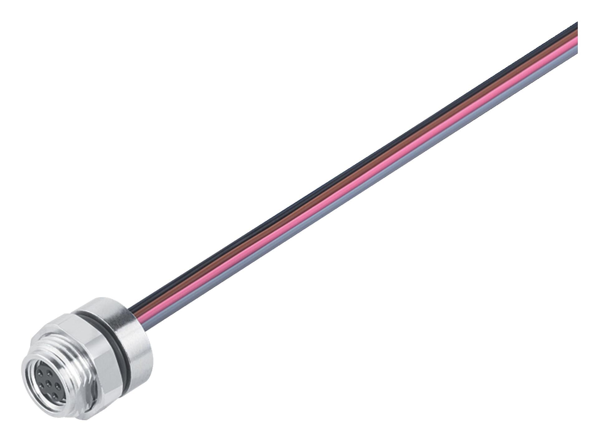 M8 Female panel mount connector, Contacts: 12, unshielded, single wires, IP67/IP69K, UL 2238, M12x1.0, Rear mounting, potted