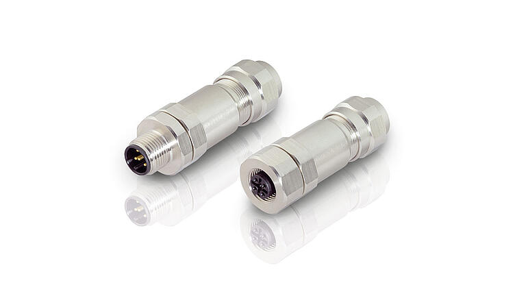 现场接线连接器使用了非屏蔽的塑料外壳,同样采用不锈钢螺纹锁紧环代替压铸锌。考虑到各部件都是由耐腐蚀的材料制成,使用不锈钢螺纹锁紧环已经可以取得足够高的介质抵抗。在宾德,可以选择A编码的针头和孔头连接器,有4、5和8芯,直头和弯角。此外,在宾德的产品组合里还有一款完全是由不锈钢整体组成的产品。