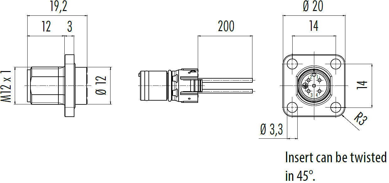 M12 Male Panel Mount Connector, Positionable, Lockable