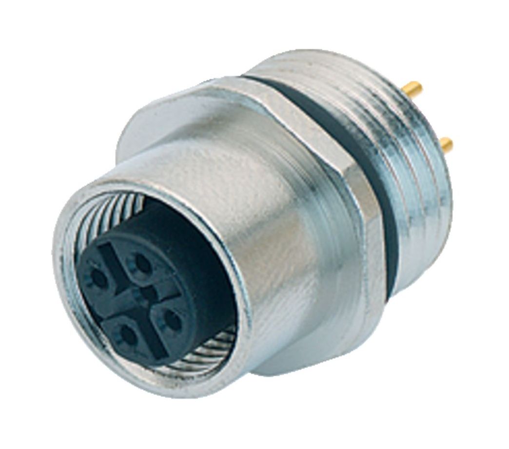 M12 孔头法兰座, 极数: 5, 非屏蔽, THT, IP68, UL 2238, PG 9, 板前安装