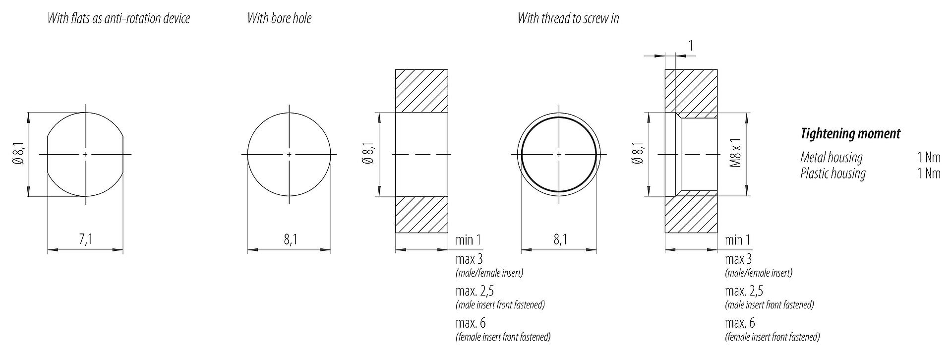- 为了将电缆接头与设备接头锁紧,螺纹环要用 "手拧紧"(约40 cNm)。
