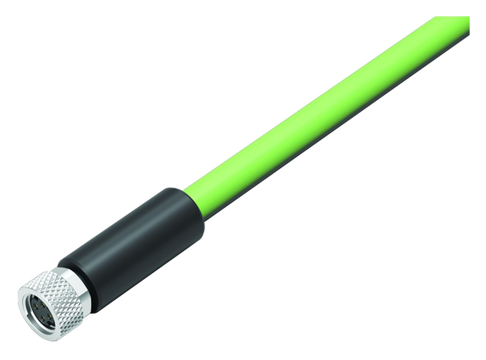 M8 直头孔头电缆连接器, 极数: 4, 屏蔽, 预铸电缆, IP67, Profinet /以太网CAT5e, PUR, 绿色, 4xAWG 22, 2m