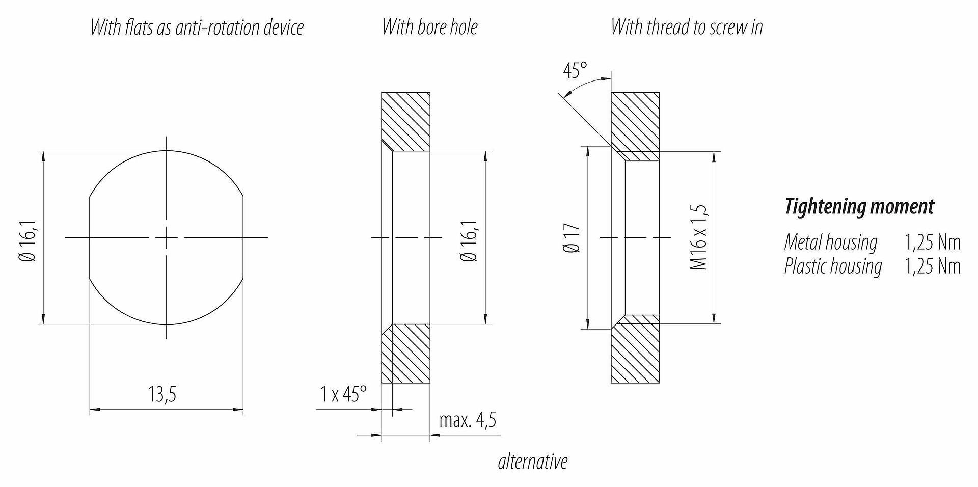 - 为了将电缆接头与设备接头锁紧,螺纹环要用 "手拧紧"(约60 cNm)。