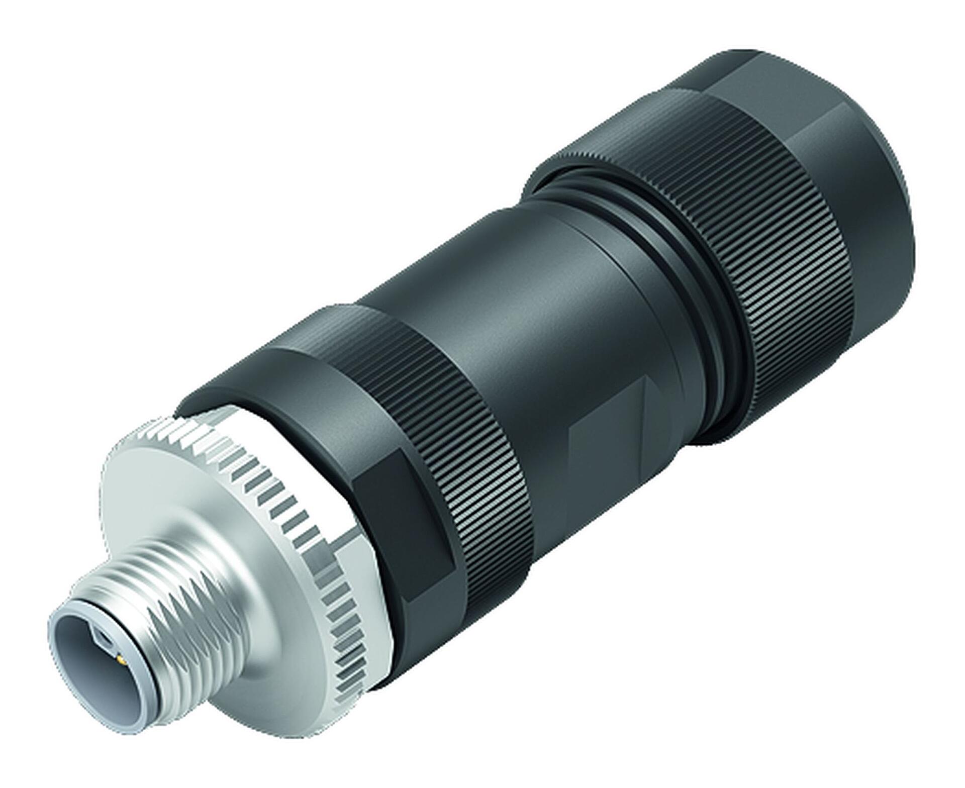 M12 直头针头电缆连接器, 极数: 4+FE, 8.0-13.0mm, 非屏蔽, 螺钉接线, IP67, M12x1.0, UL 2237正在准备中, 带PE接口