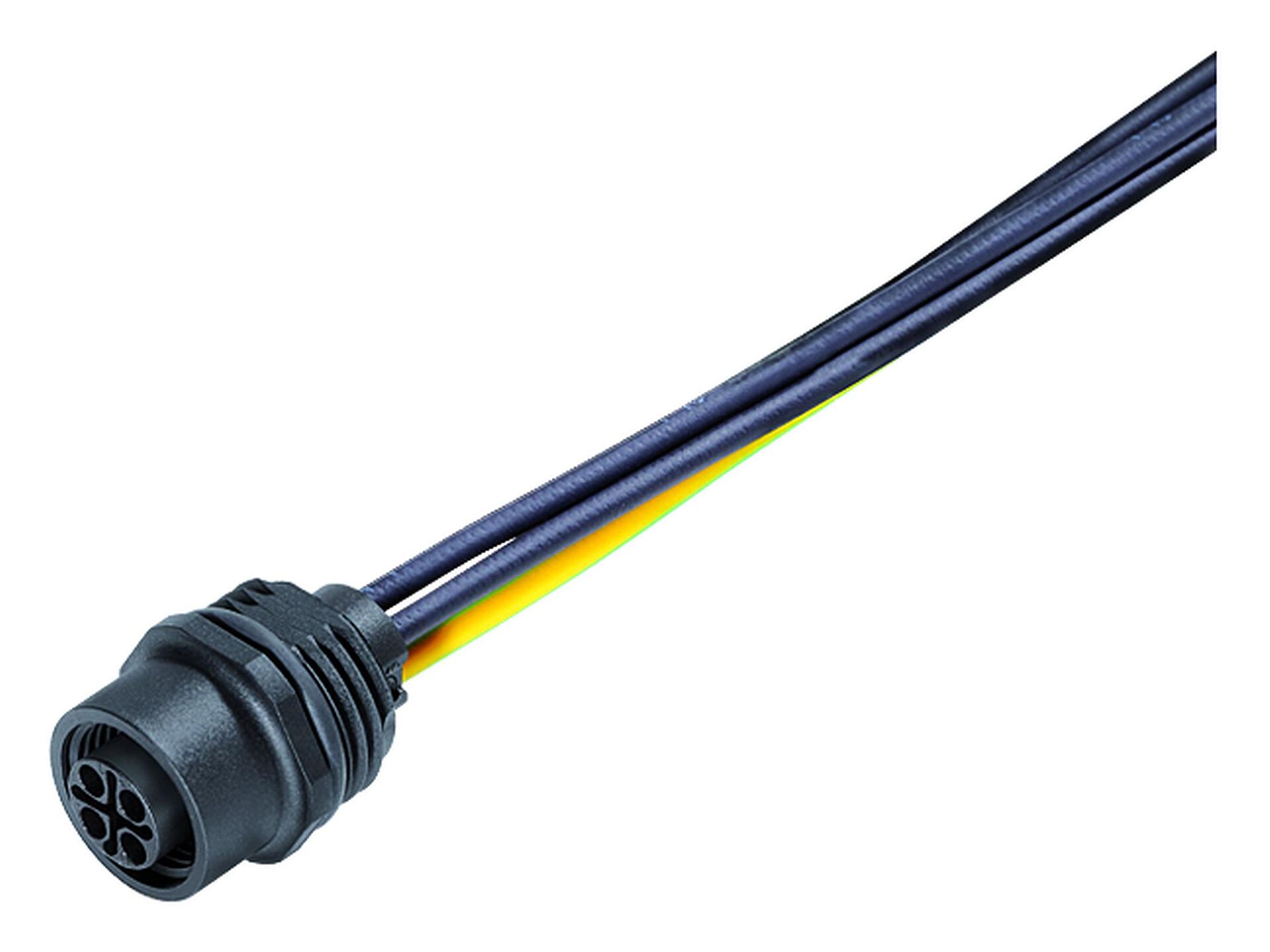 4. M12 孔头法兰座, 极数: 4, 非屏蔽, 带导线, IP68, UL 2238, M16x1.5, 板前安装, 模压成型