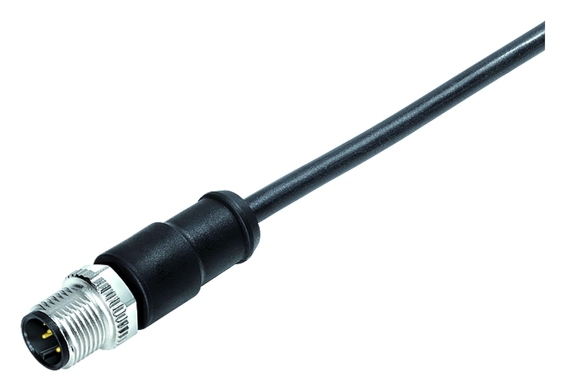 M12 直头针头电缆连接器, 极数: 4, 非屏蔽, 预铸电缆, IP68, PUR, 黑色, 4x1.50mm², 5m