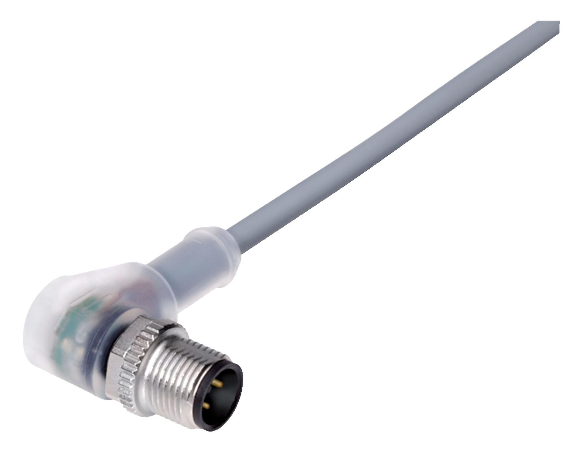 M12 弯角针头电缆连接器, 极数: 4, 非屏蔽, 预铸电缆, IP68/IP69K, UL 2238, PVC, 灰色, 4x0.34 mm², 带LED的PNP, 2m