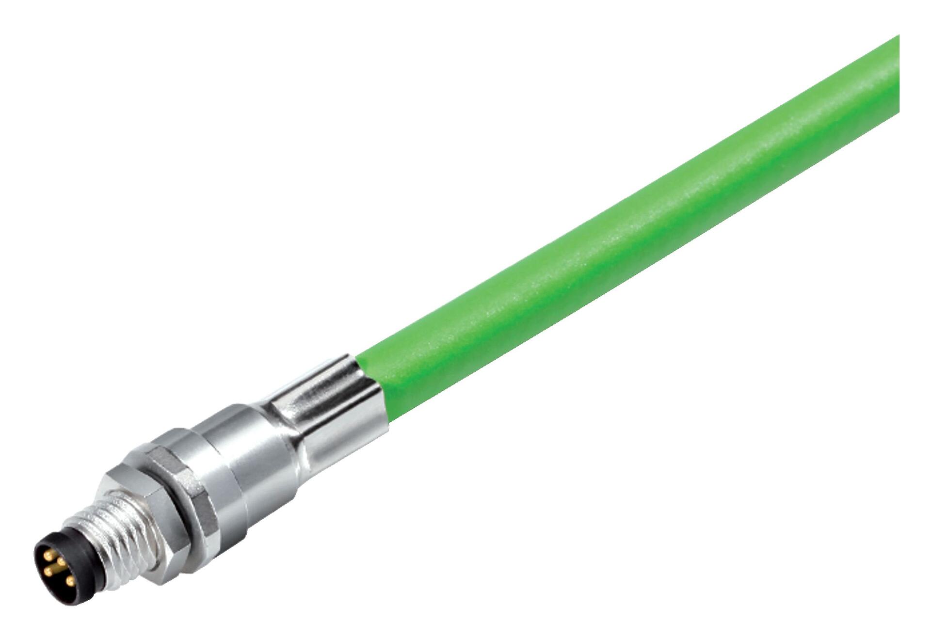 M8 针头法兰座, 极数: 4, 屏蔽, 法兰座带电缆, IP67, M8x1.0, Ethernet, PUR, 绿色, 4xAWG 22, 後壁安裝, 模压成型, 0.5m