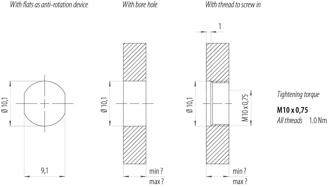 - 为了将电缆接头与设备接头锁紧,螺纹环要用 "手拧紧"(约40 cNm)。SW9 扭矩扳手可作为附件提供(订货号 07 0085 000)。