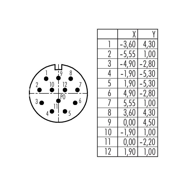 M23 对插插头, 极数: 12, 6.0-10.0mm, 可接屏蔽, 焊接(必须单独订购带密封圈的接地套管), IP67