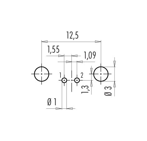 M9 孔头法兰座,弯角, 极数: 2, 可接屏蔽, THT, IP67, 後壁安裝