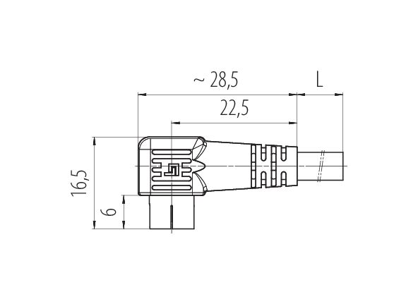 Snap-in 快插 弯角针头电缆连接器, 极数: 5, 非屏蔽, 预铸电缆, IP40, PVC, 黑色, 5x0.25mm², 5m